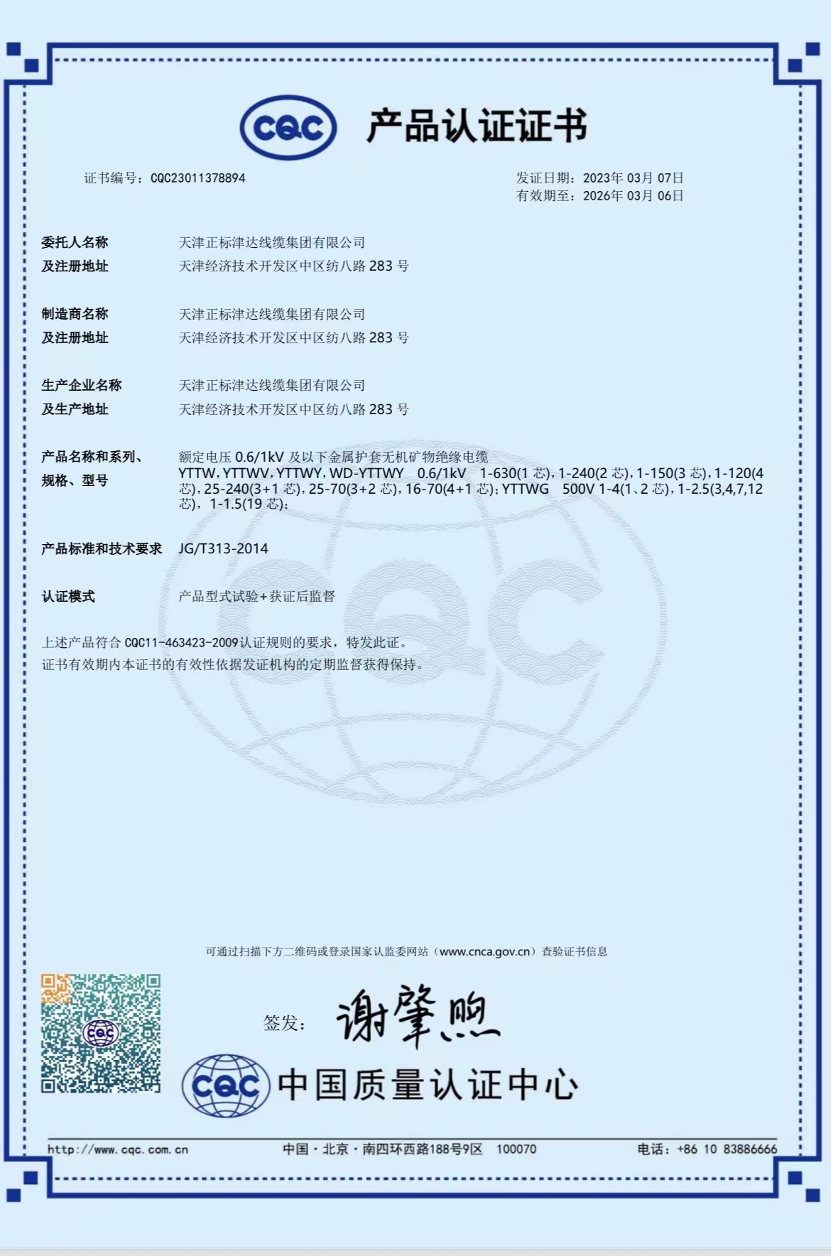 云母帶礦物絕緣銅護套電纜(RTTZ、YTTWY)最早初,我國的礦物絕緣電纜只有同步國際標準…津達電纜安全規定
